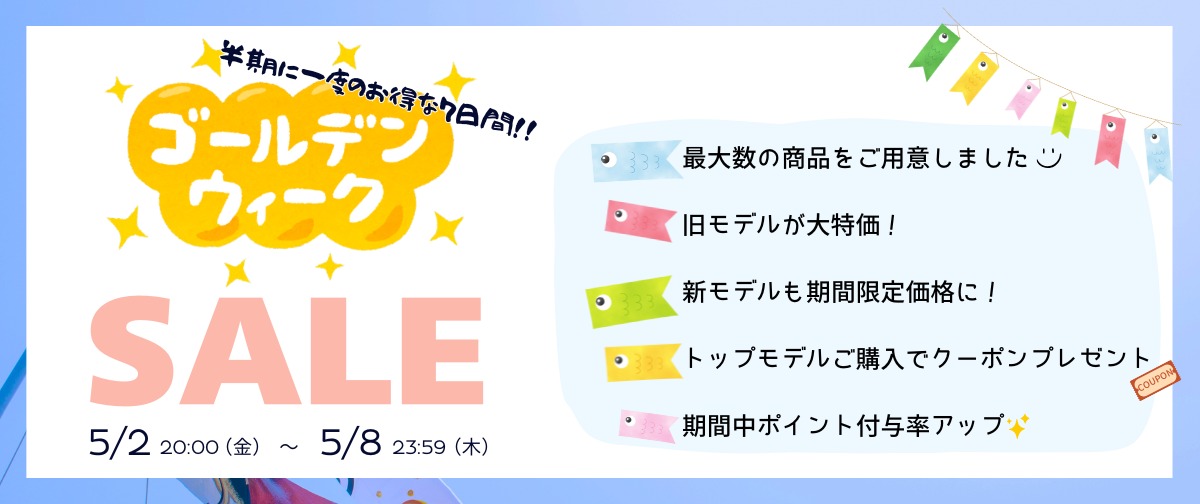 半期に一度のお得な7日間【ゴールデンウィークセール】