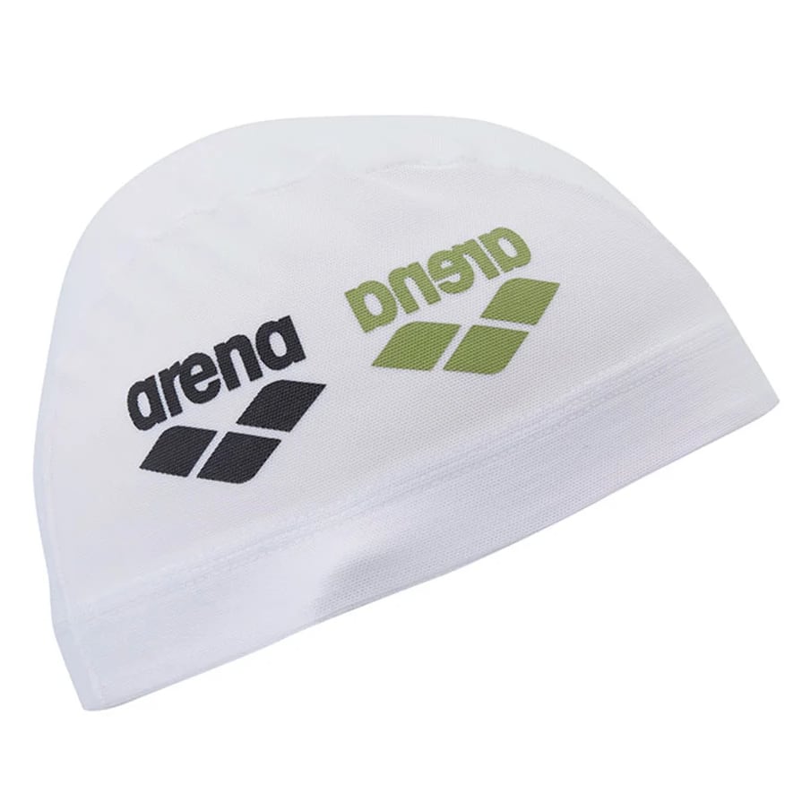 arenaロゴの「arena」を反転し、あえて違和感のあるデザインに仕上げたメッシュ素材のスイムキャップ。