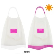 フィンは全体が白色で、カラーロゴが付いていますが、太陽の紫外線に当たると、ヒールストラップとフィンの先端部分が色変化します。紫外線から保護されると、元の白色に戻ります。