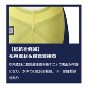 ■水中で軽量性を発揮するスリットナイロン構造の高撥水布帛(SONIC LIGHT RIBTEX-UW0)と、ホールド感の異なる布帛素材を組み合わせて設計されたトップレース水着 GX・SONIC ROYAL