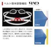 ・日本人の顔の形状に合わせた3Dクッションでフィット感を向上させ、飛び込みでのズレや水漏れのリスクを軽減させる高密着クッション付レーシングゴーグルです。