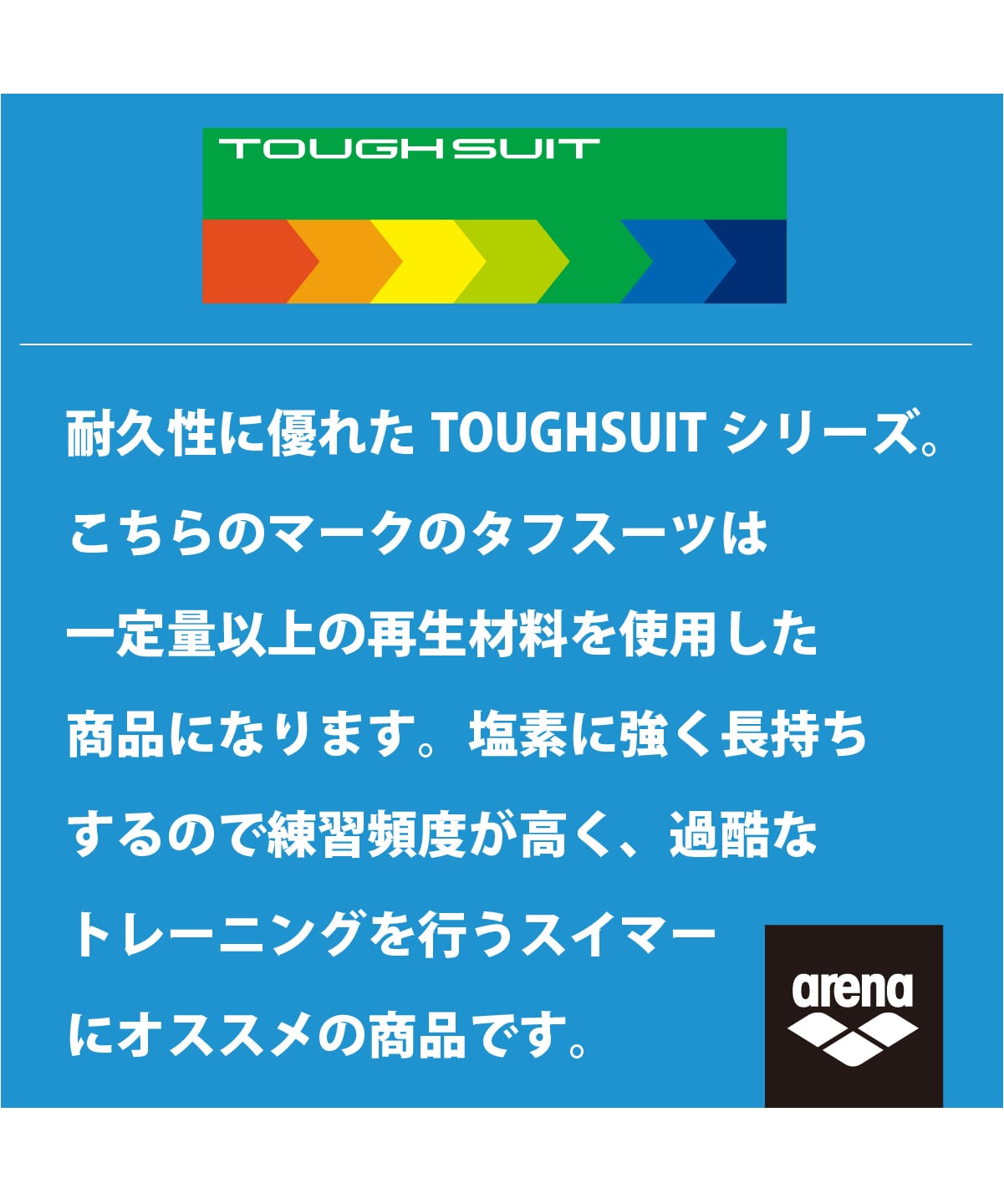 環境に配慮したリサイクルポリエステル素材「タフスキンT2E」を使用し塩素に強く長持ち。