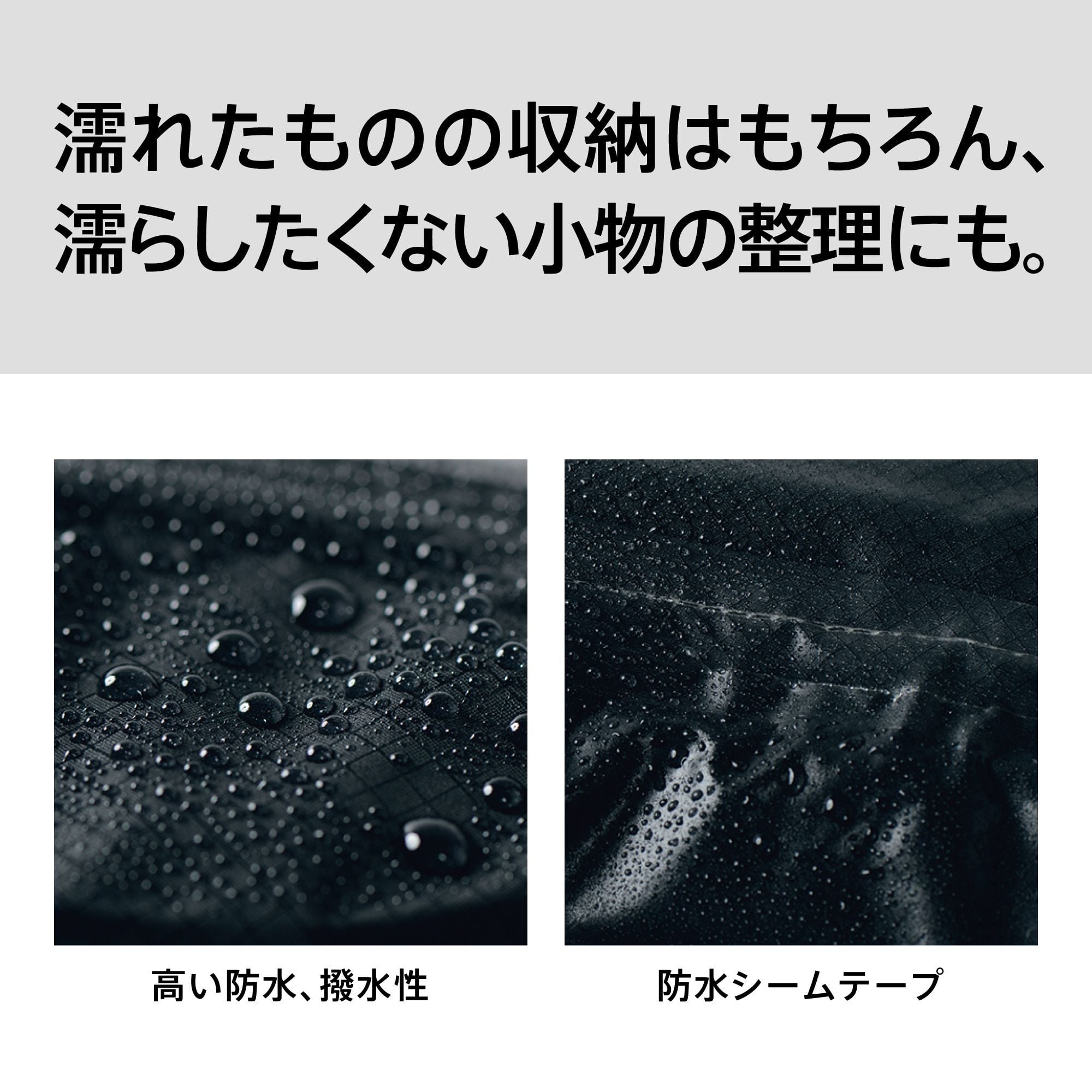 (※濡れたものを収納する場合、完全防水ではありませんのでご注意ください。水を絞り落としてからの収納をおすすめします)。