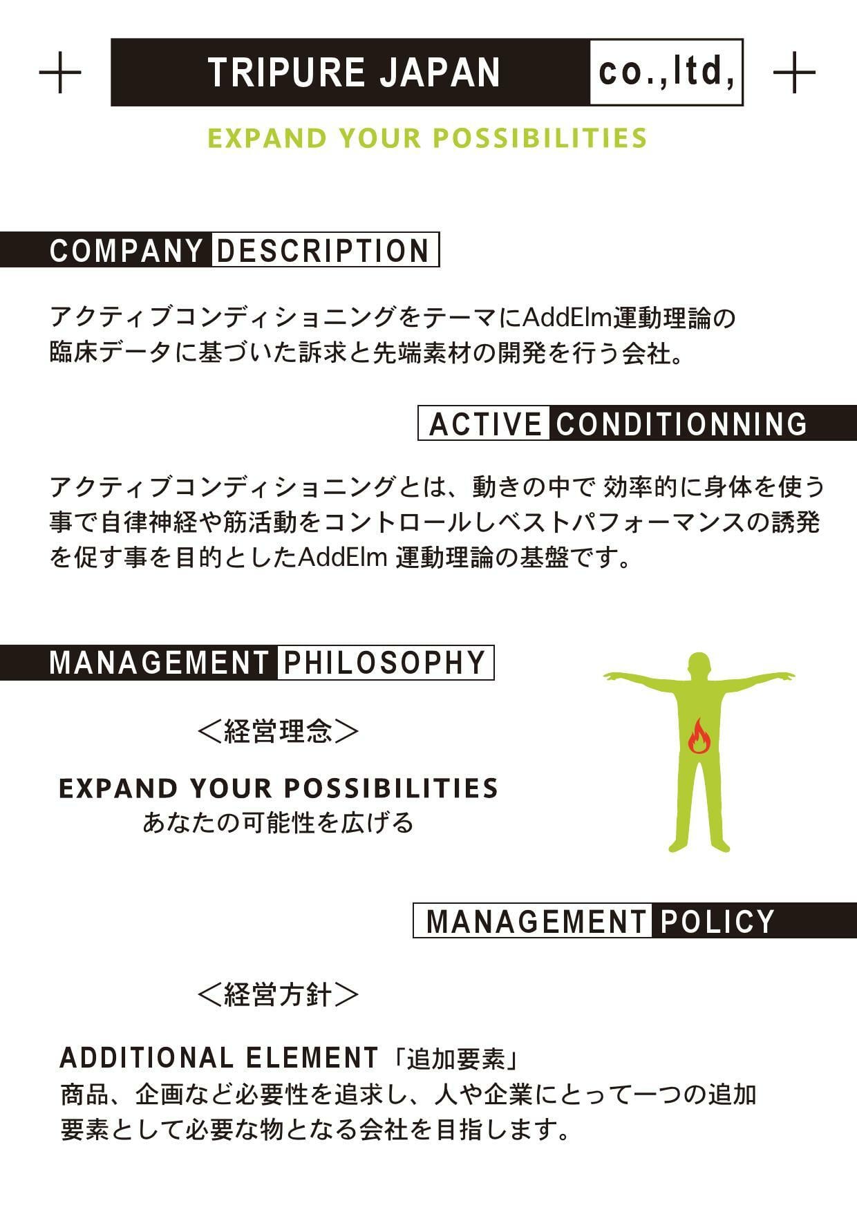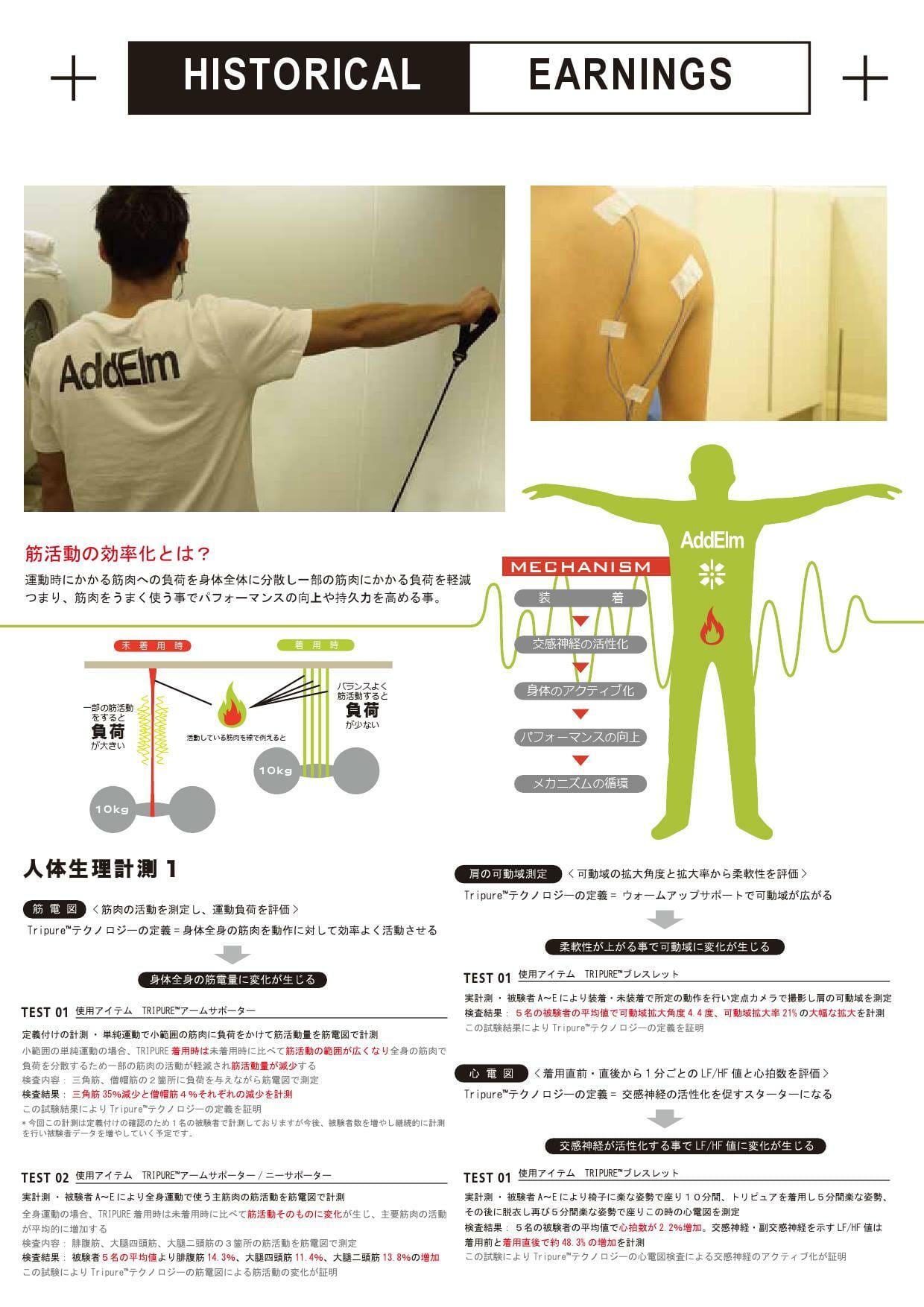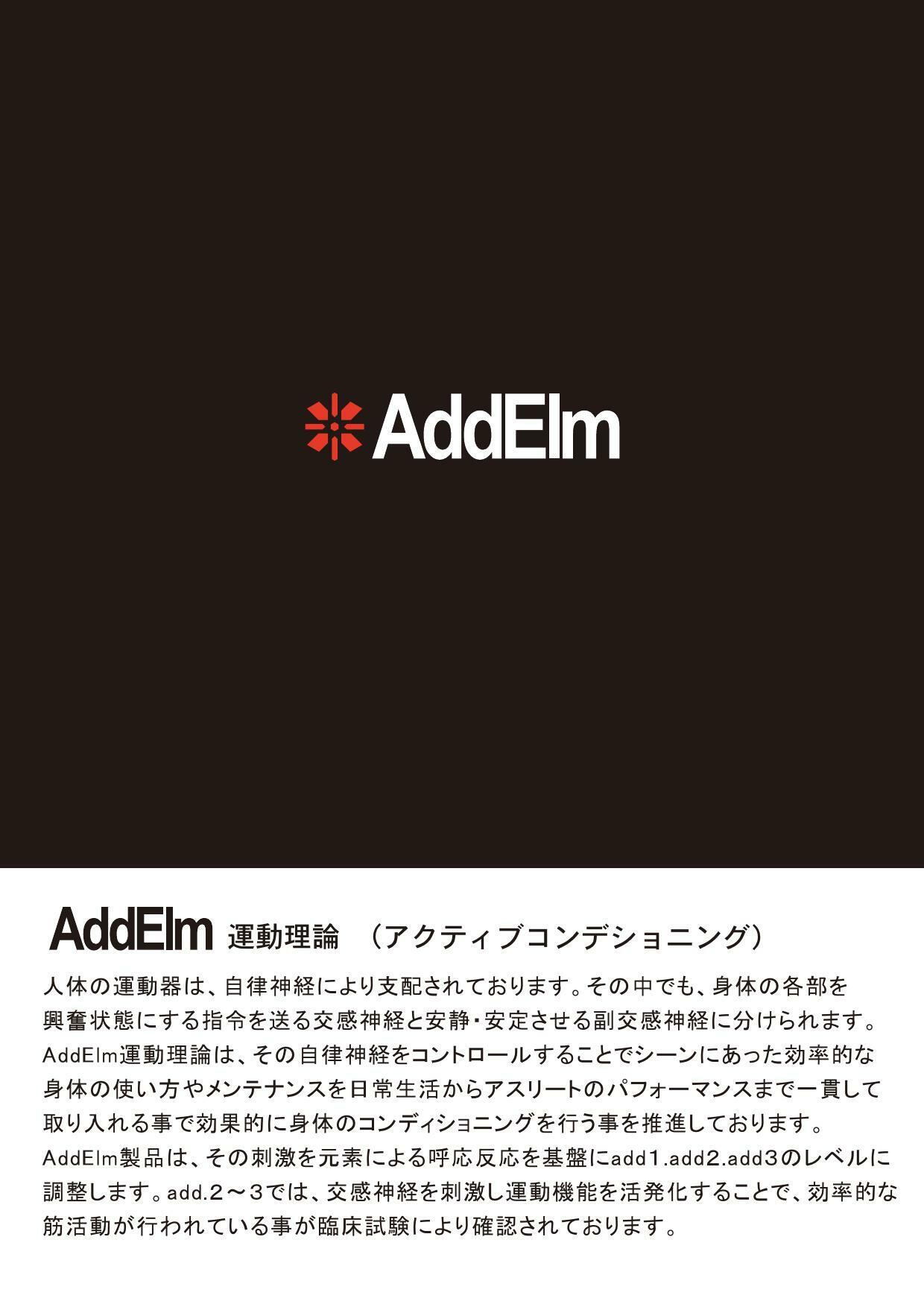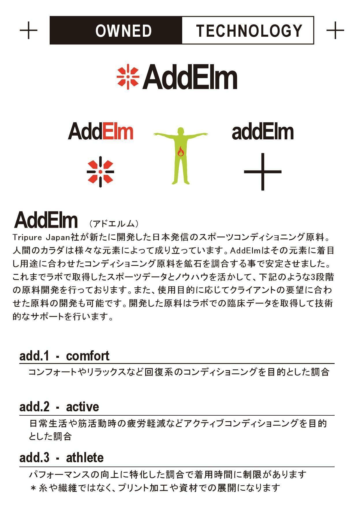 AddElmアドエルム(旧Tripureトリピュア)は、運動能力を効率よく引き出す事を目的に研究開発された先端のスポーツテクノロジーです。スポーツコンディションを、より早くアクティブな状態に!アスリートのウォームアップをサポートするアクティブテクノロジーです。