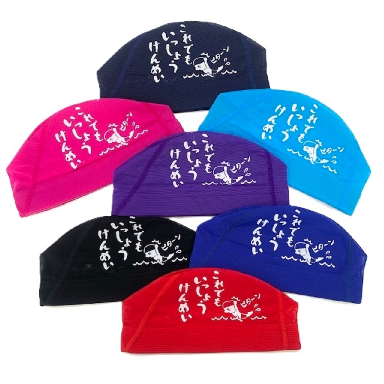 プリントメッシュキャップ【これでもいっしょうけんめい】 スイムキャップ 水泳帽 水泳 帽子 競泳 スイミング NEWLEVELオリジナル