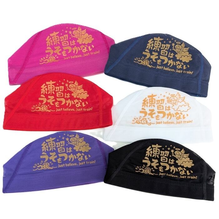 プリントメッシュキャップ【練習はうそをつかない】水泳 帽子 水泳帽 競泳 スイムキャップ NEWLEVEL ニューレヴェル オリジナル | New Level Official Store/ニューレヴェルオフィシャルストア