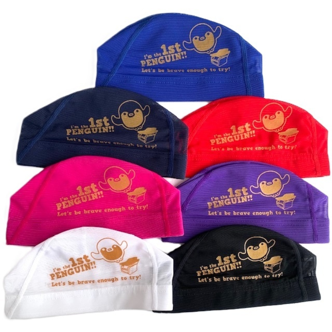 プリントメッシュキャップ【ファーストペンギン】 水泳 帽子 水泳帽 競泳 スイムキャップ NEWLEVEL ニューレヴェル オリジナル