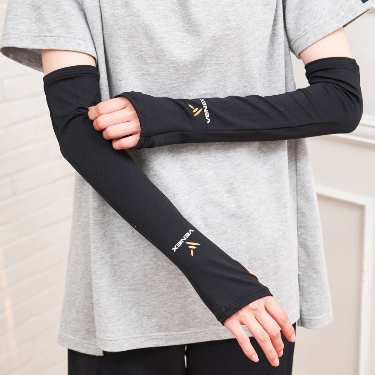手先から肘までカバーできるロングタイプのアームカバー。