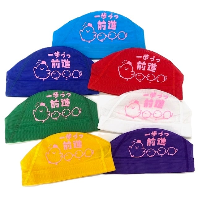 プリントメッシュキャップ【一歩づつ前進】ひよこ にわとり ヒヨコ スイムキャップ 水泳帽 水泳 帽子 競泳 スイミング NEWLEVELオリジナル | New Level Official Store/ニューレヴェルオフィシャルストア